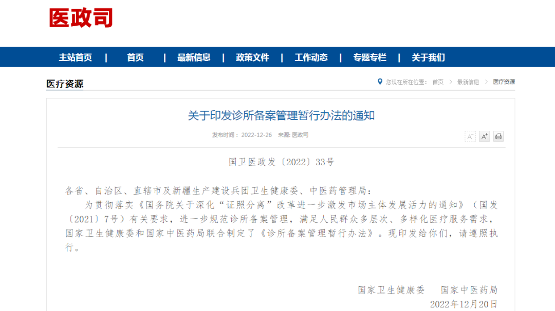 为进一步规范诊所备案管理,国家卫生健康委在总结诊所发展试点经验基础上,会同国家中医药管理局制定了《诊所备案管理暂行办法》(以下简称《办法》)。